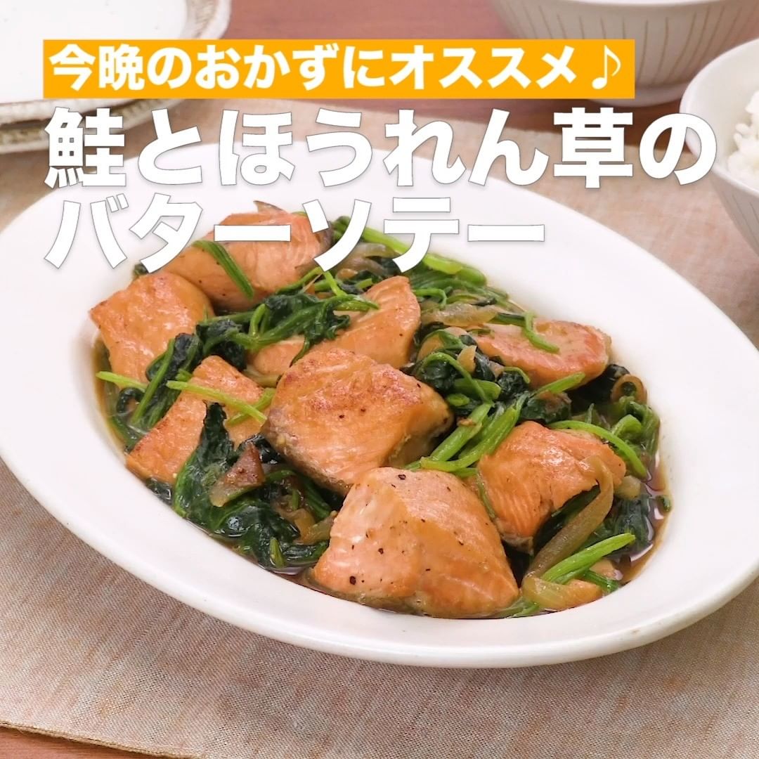 ④<今晩のおかずにオススメ♪鮭とほうれん草のバターソテー>