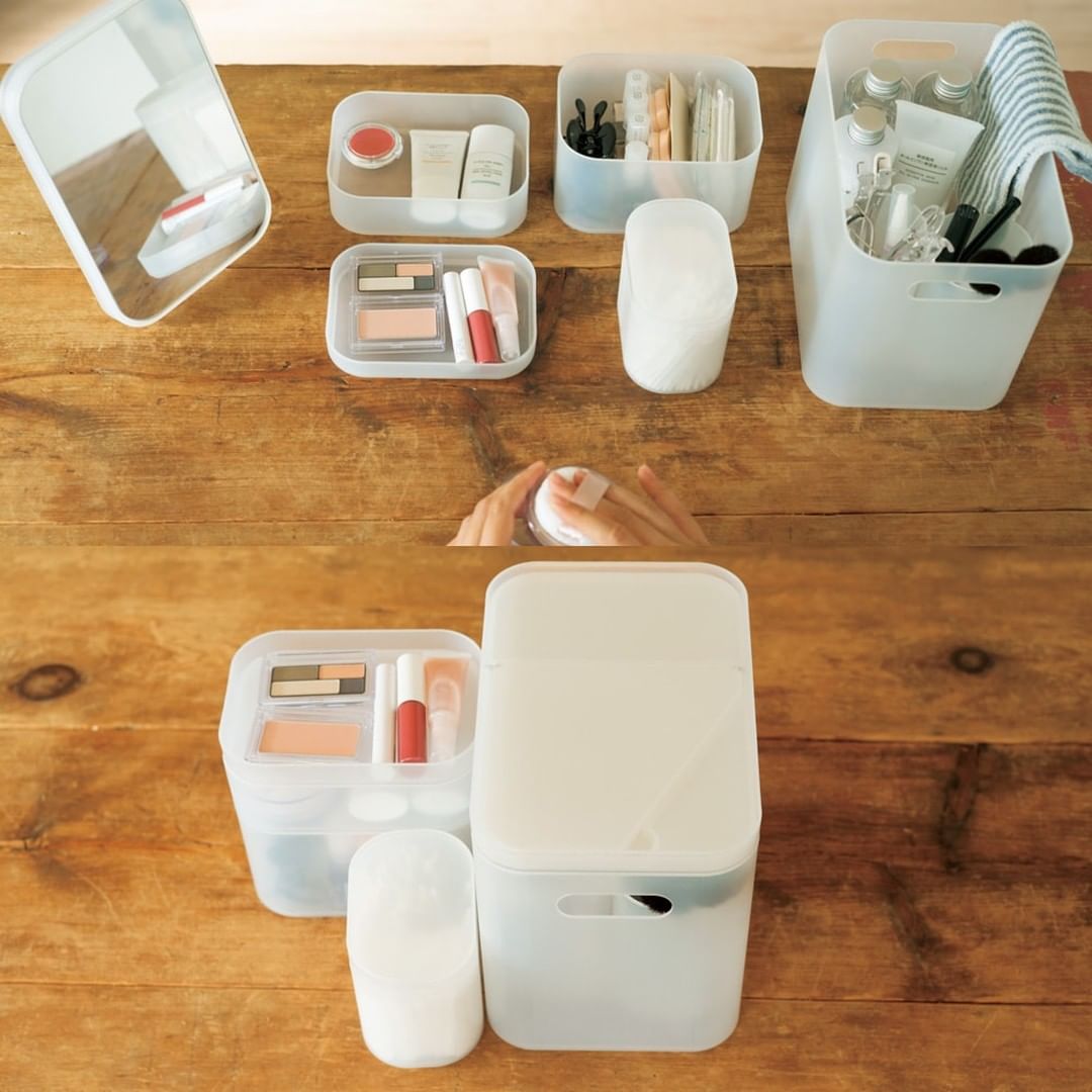 メイク用品の整頓にはもちろん、あらゆるくらしの収納に役立つ『ポリプロピレン メイクボックス』。