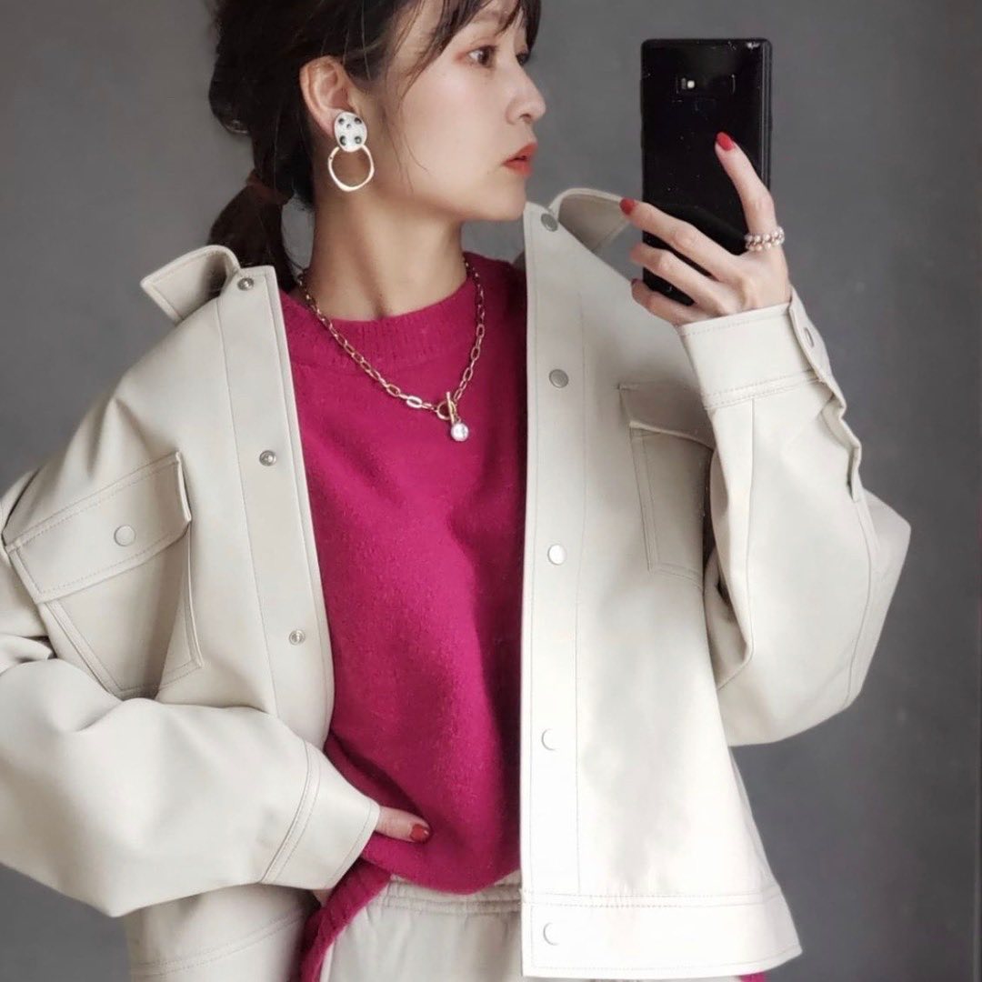 #フェイクレザーショートジャケット