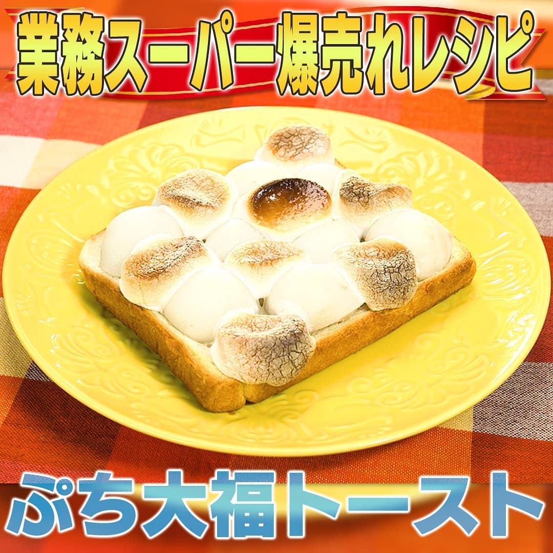 @Kajiyarou Kajiyarou: 『ぷち大福トースト』 ①ぷち大福4つをそれぞれ半分に切る ②6枚切り食パン1枚の上に、切ったぷち大福を間を空け並べる ③1200Wのトースターで3分 2021-09-21 『ぷち大福トースト』 ①ぷち大福4つをそれぞれ半分に切る ②6枚切り食パン1枚の上に、切ったぷち大福を間を空け並べる ③1200Wのトースターで3分焼く ④焼いた食パンを取り出し、空いたところにマシュマロを置く ⑤1200Wのトースターでマシュマロに焦げ目がつくまで焼いたら完成! ★業務スーパーで人気の「ぷち大福」を使った簡単アレンジ! #家事ヤロウ #業務スーパー #業スー #バカリズム #中丸雄一 #カズレーザー #food #cooking Ciao, Nihon.