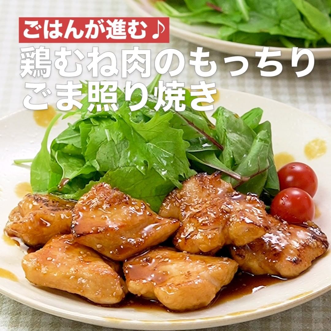 ④<ごはんが進む♪鶏むね肉のもっちりごま照り焼き>