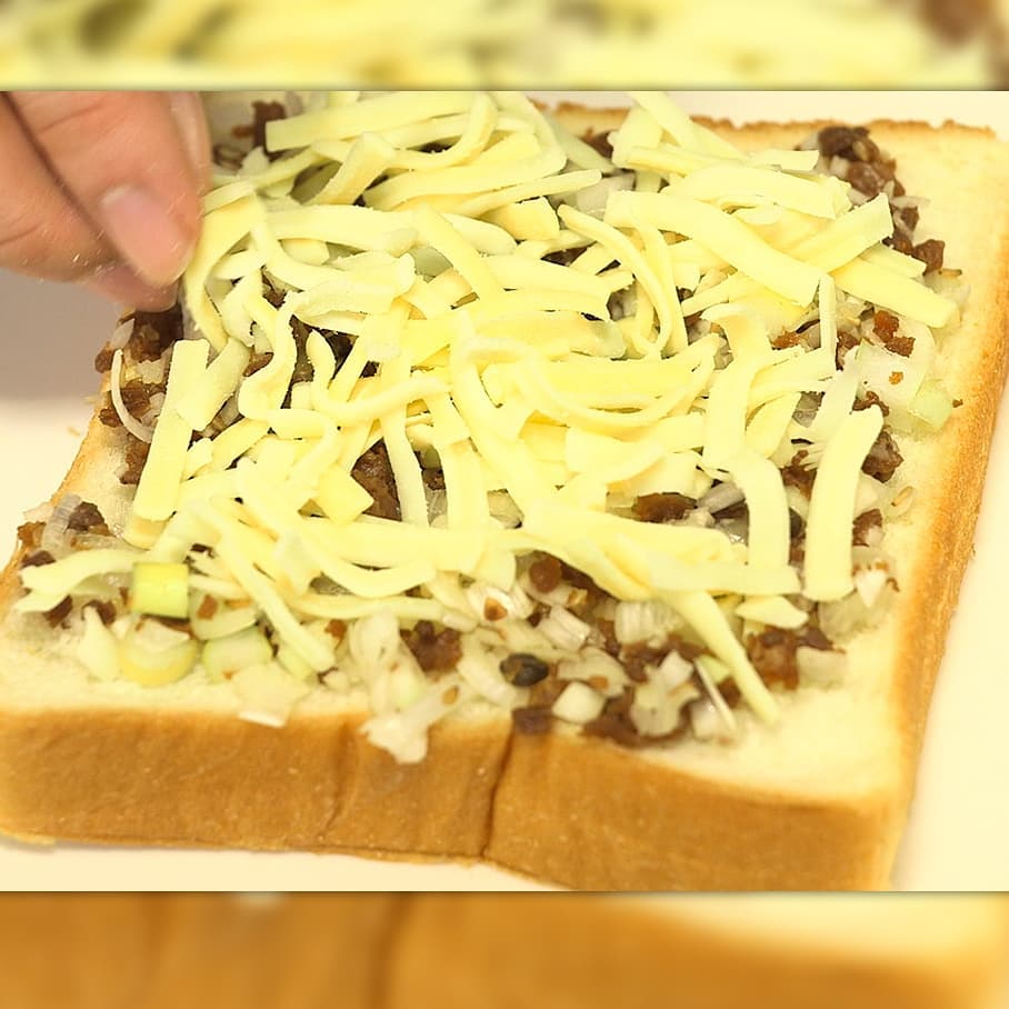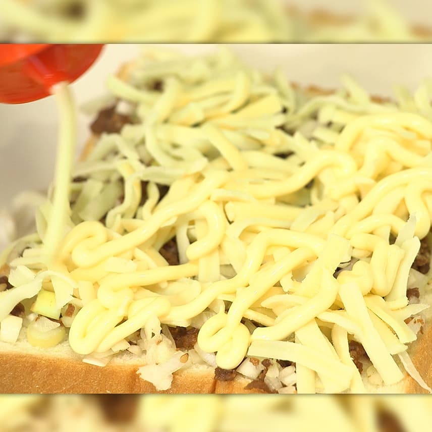 ②6枚切り食パンにのせ、ミックスチーズ、マヨネーズを適量かける