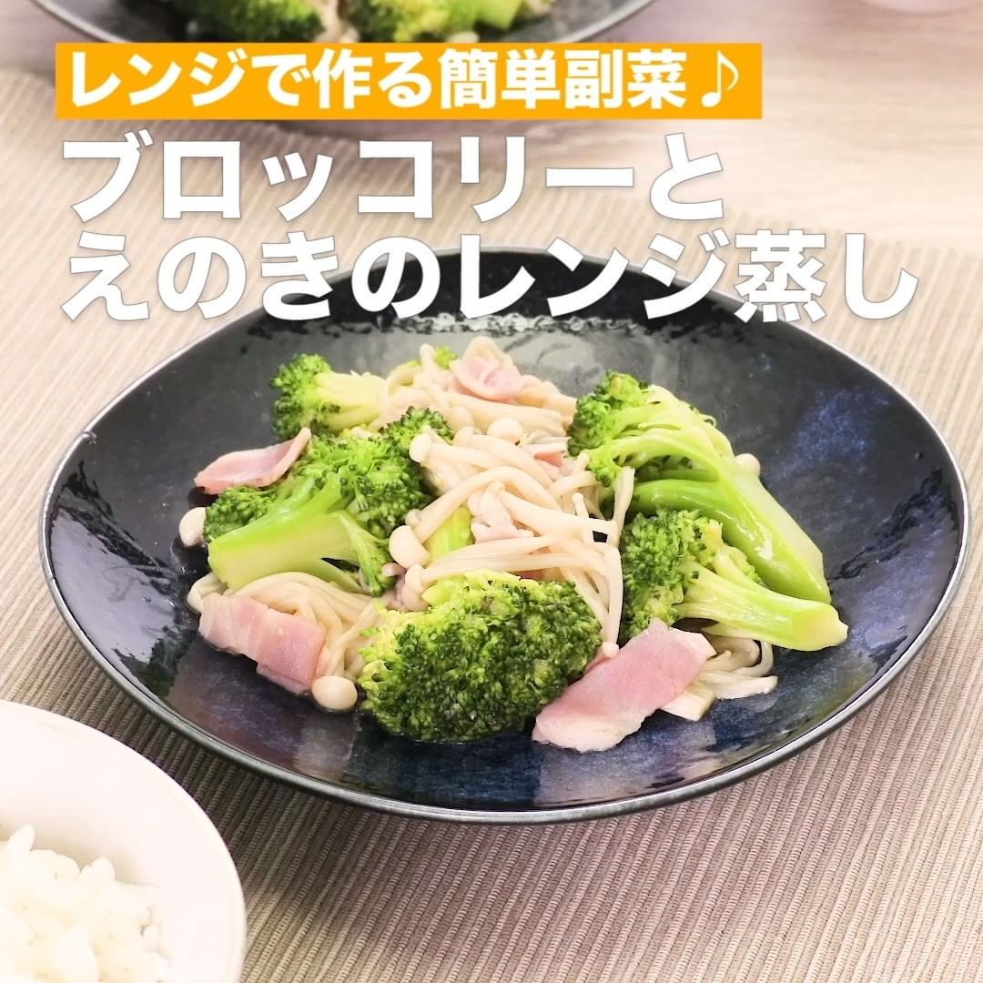 ⑥<レンジで作る簡単副菜♪ブロッコリーとえのきのレンジ蒸し>