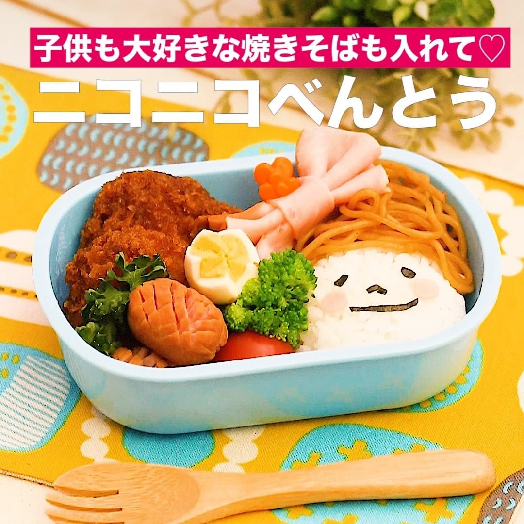 ②<子供も大好きな焼きそばも入れて♡ニコニコべんとう>