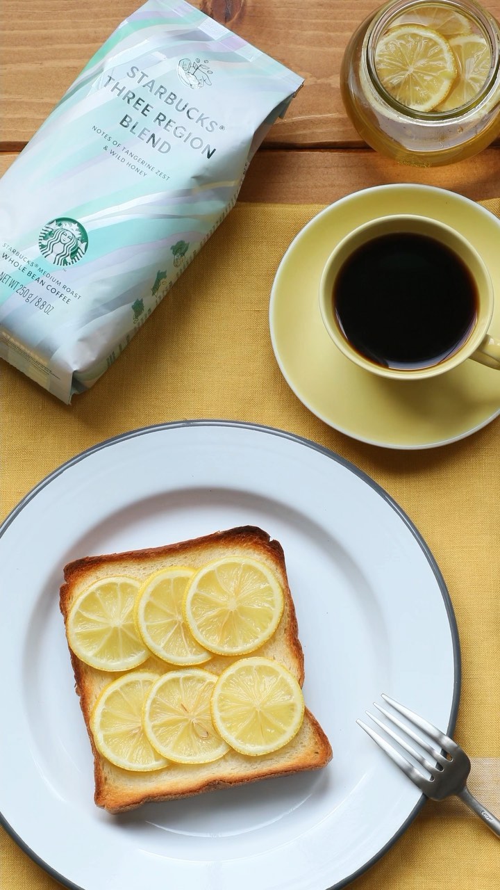 トーストが焼きあがった瞬間にふわっと香る、甘く香ばしい香りがこの季節の朝食にぴったりです!はちみつのやさしい甘みとレモンの爽やかさが、コーヒーの味わいを心地よく広げてくれますよ☕