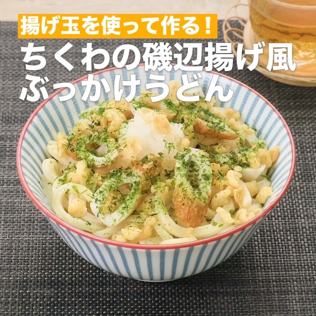 ②<揚げ玉を使って作る!ちくわの磯辺揚げ風ぶっかけうどん>