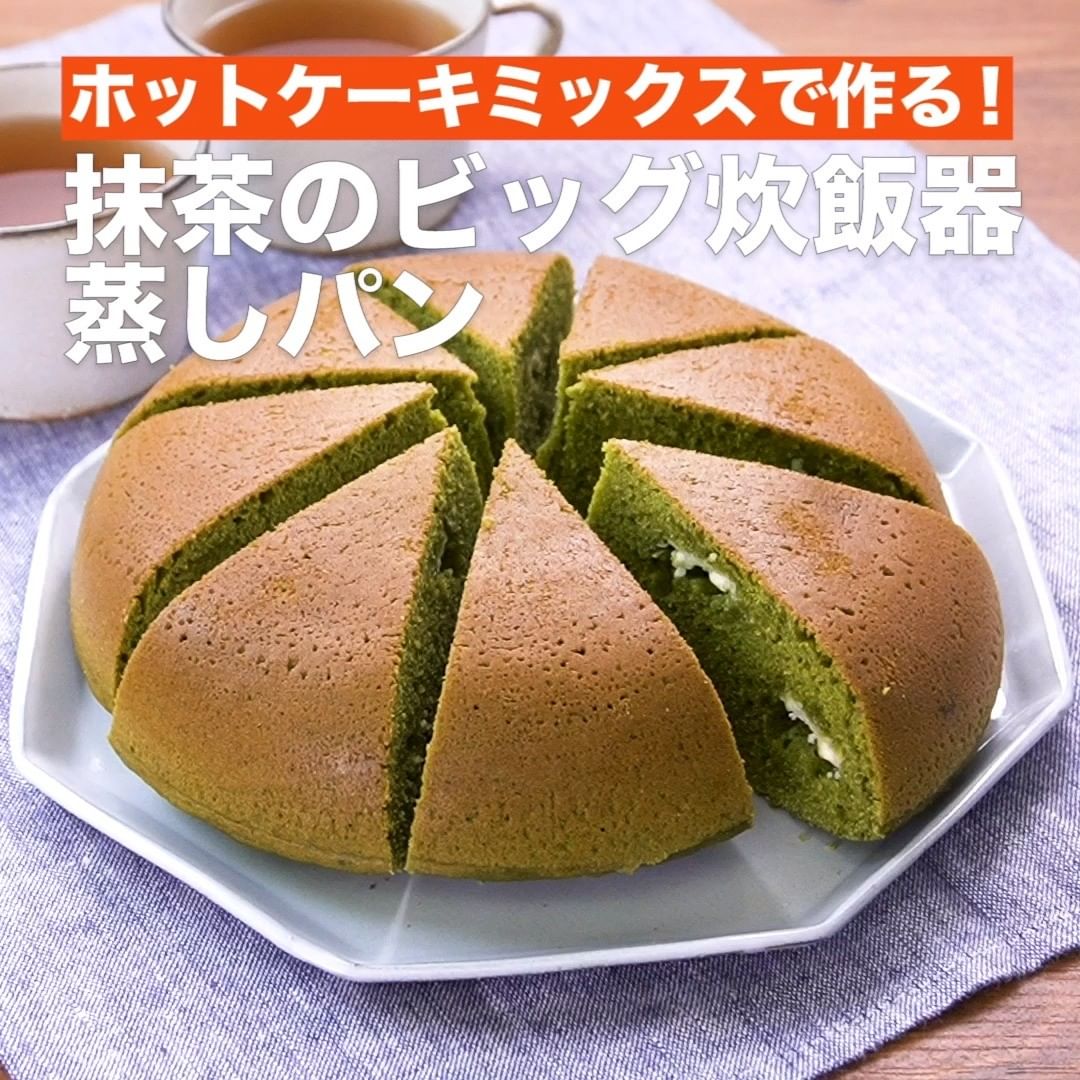 ①<ホットケーキミックスで作る!抹茶のビッグ炊飯器蒸しパン>