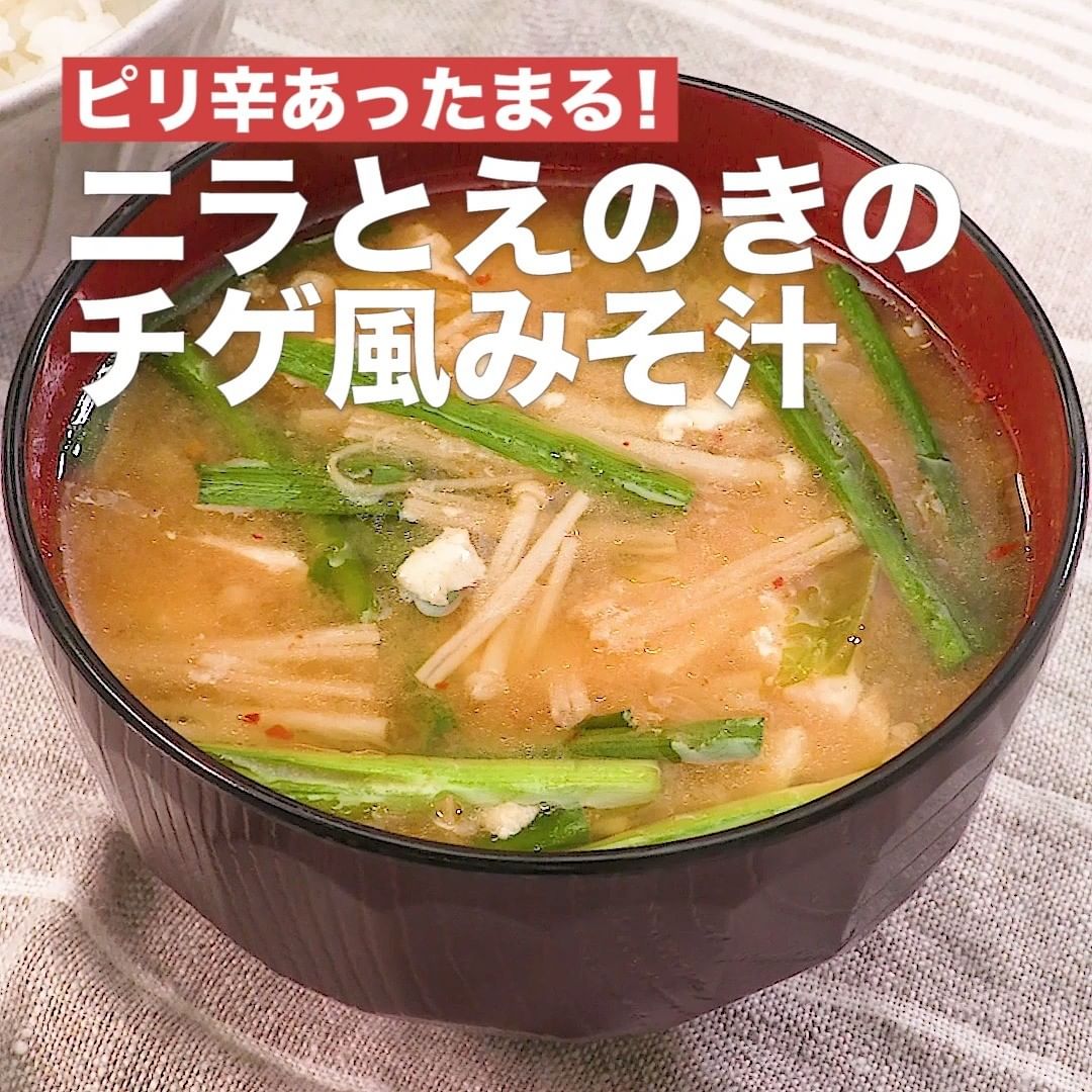 ⑤<ピリ辛あったまる!ニラとえのきのチゲ風みそ汁>