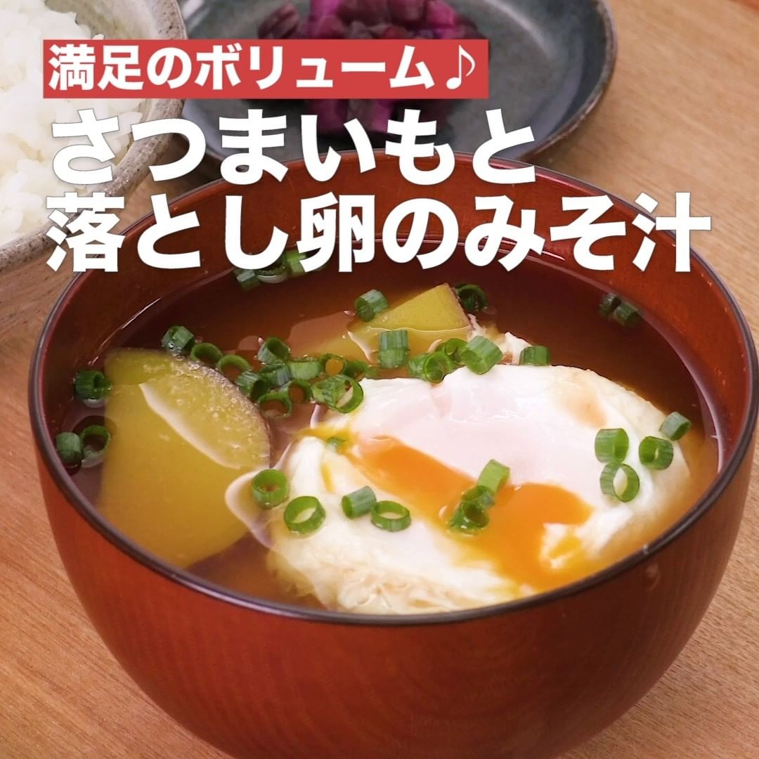 ④<満足のボリューム♪さつまいもと落とし卵のみそ汁>