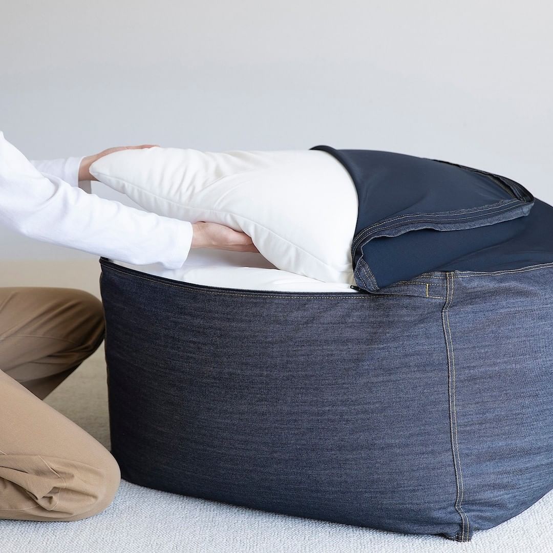 それでも使い続けるうちに、へたりが気になってきたら、専用の補充用クッションを。元の本体に重ねてカバーの内側へ入れるだけで、座り心地を改善します。