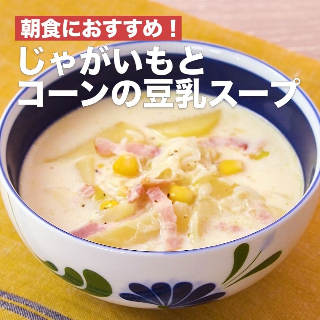 ①<朝食におすすめ!じゃがいもとコーンの豆乳スープ>
