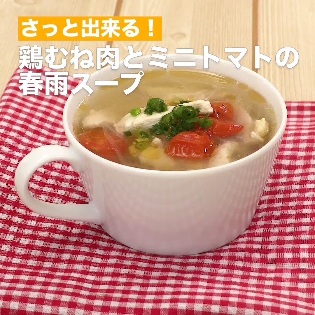 ⑦<さっと出来る!鶏むね肉とミニトマトの春雨スープ>