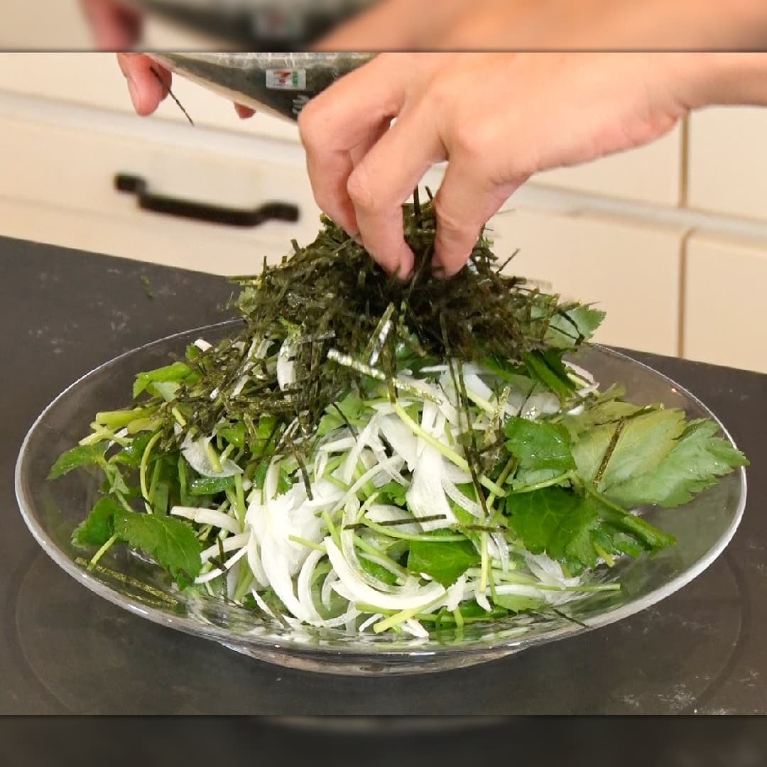 ④ 皿に盛り、刻み海苔をのせたら完成!