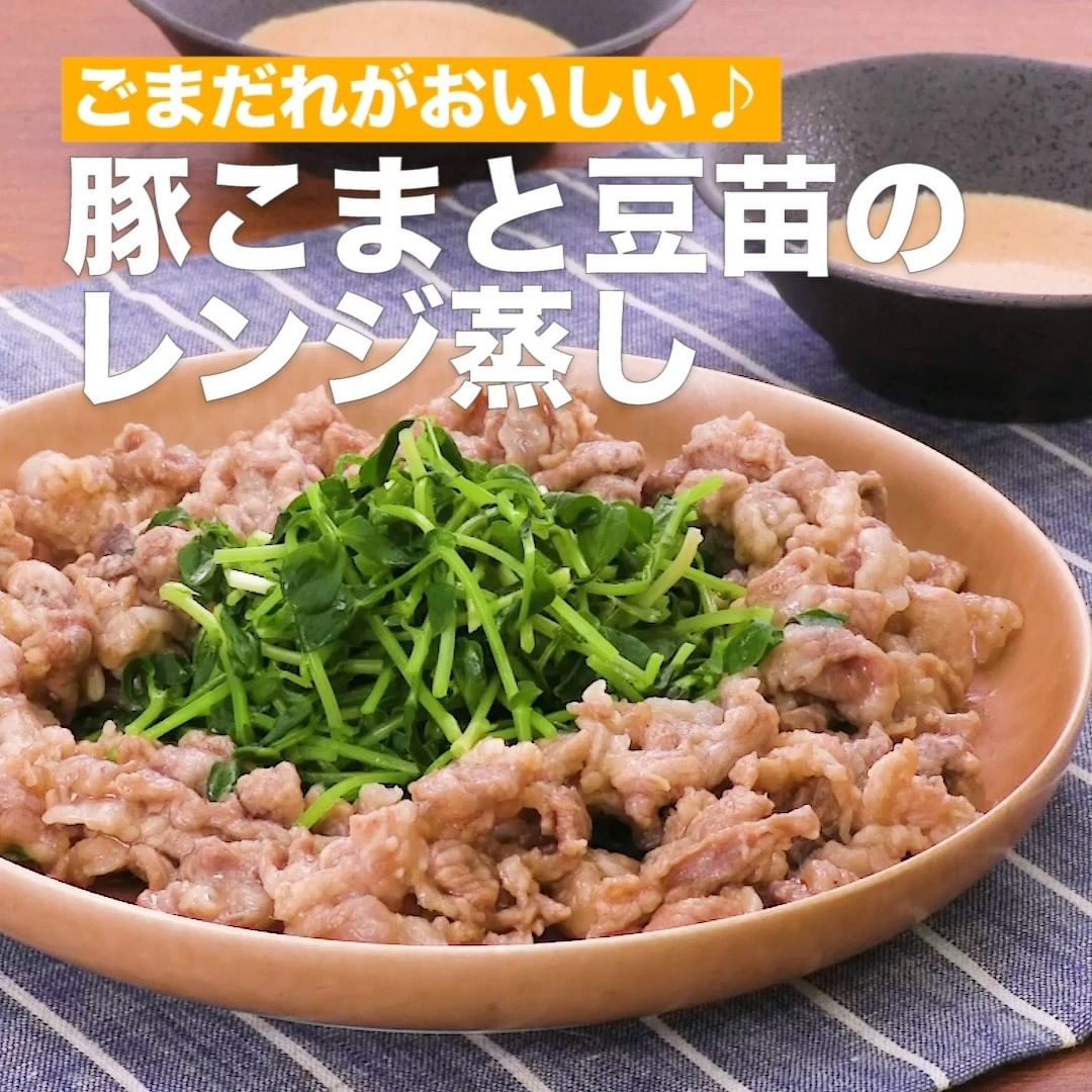 ①<ごまだれがおいしい♪豚こまと豆苗のレンジ蒸し>