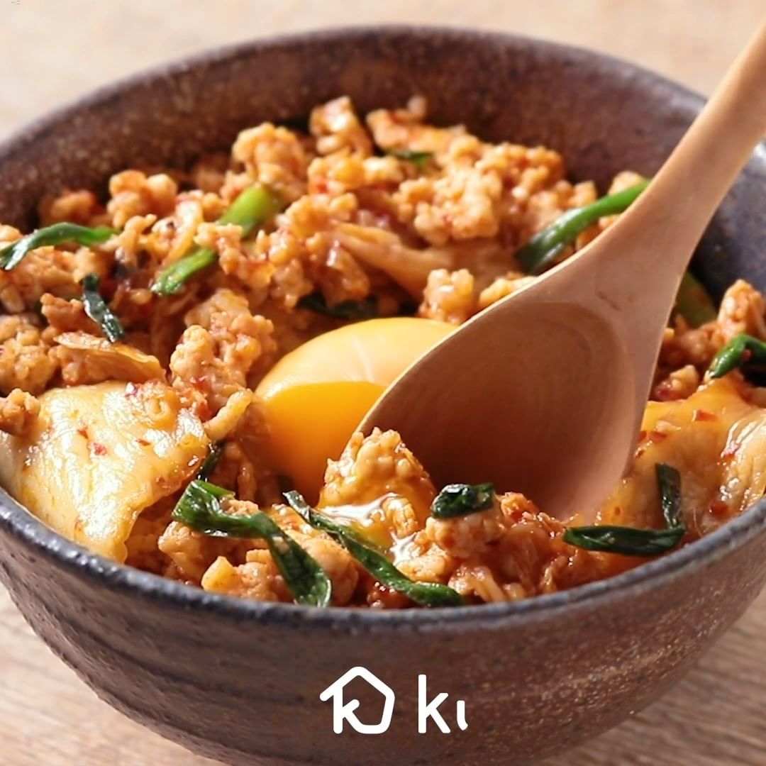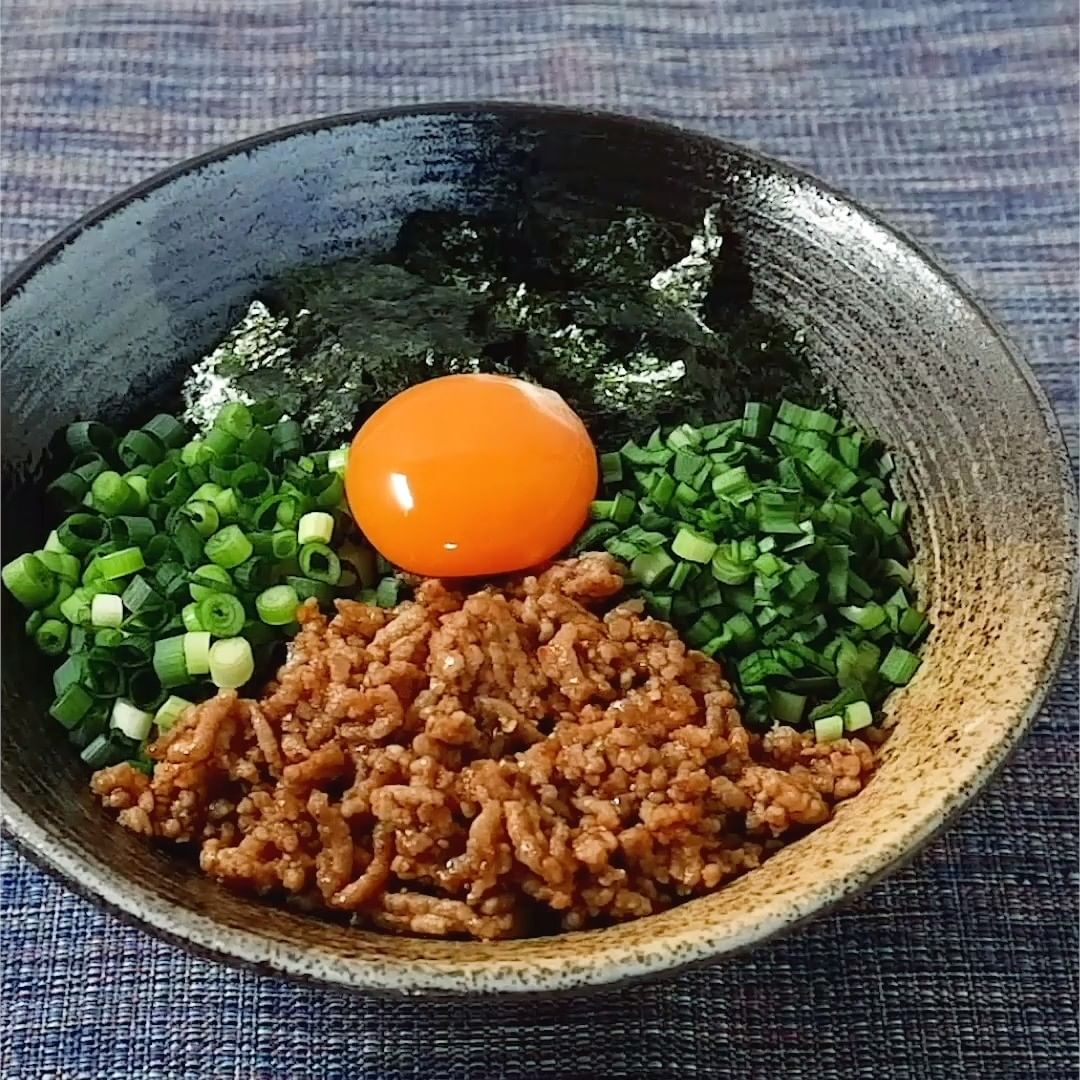 ④鶏ひき肉のピリ辛親子丼