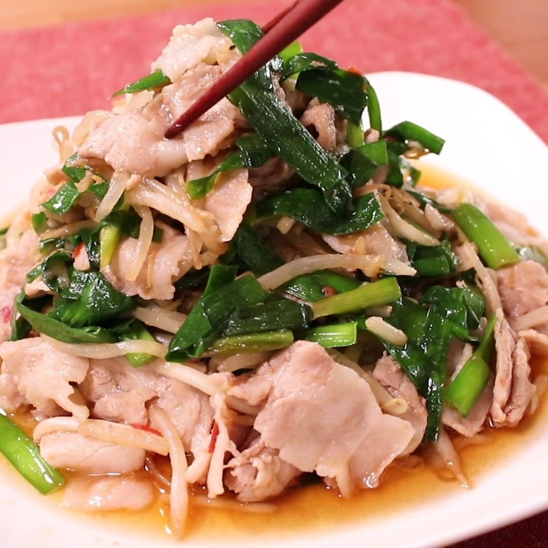 ②豚バラと豆苗の中華和え