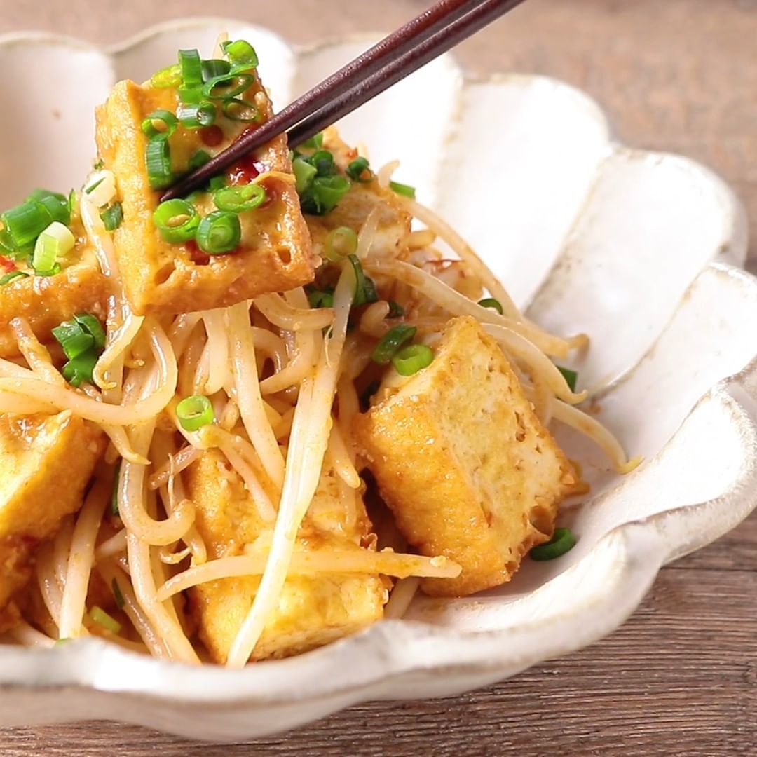 ⑦節約 もやしと厚揚げの豆板醤炒め