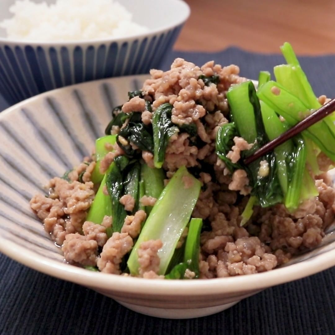 ③ご飯がすすむ 小松菜のひき肉炒め