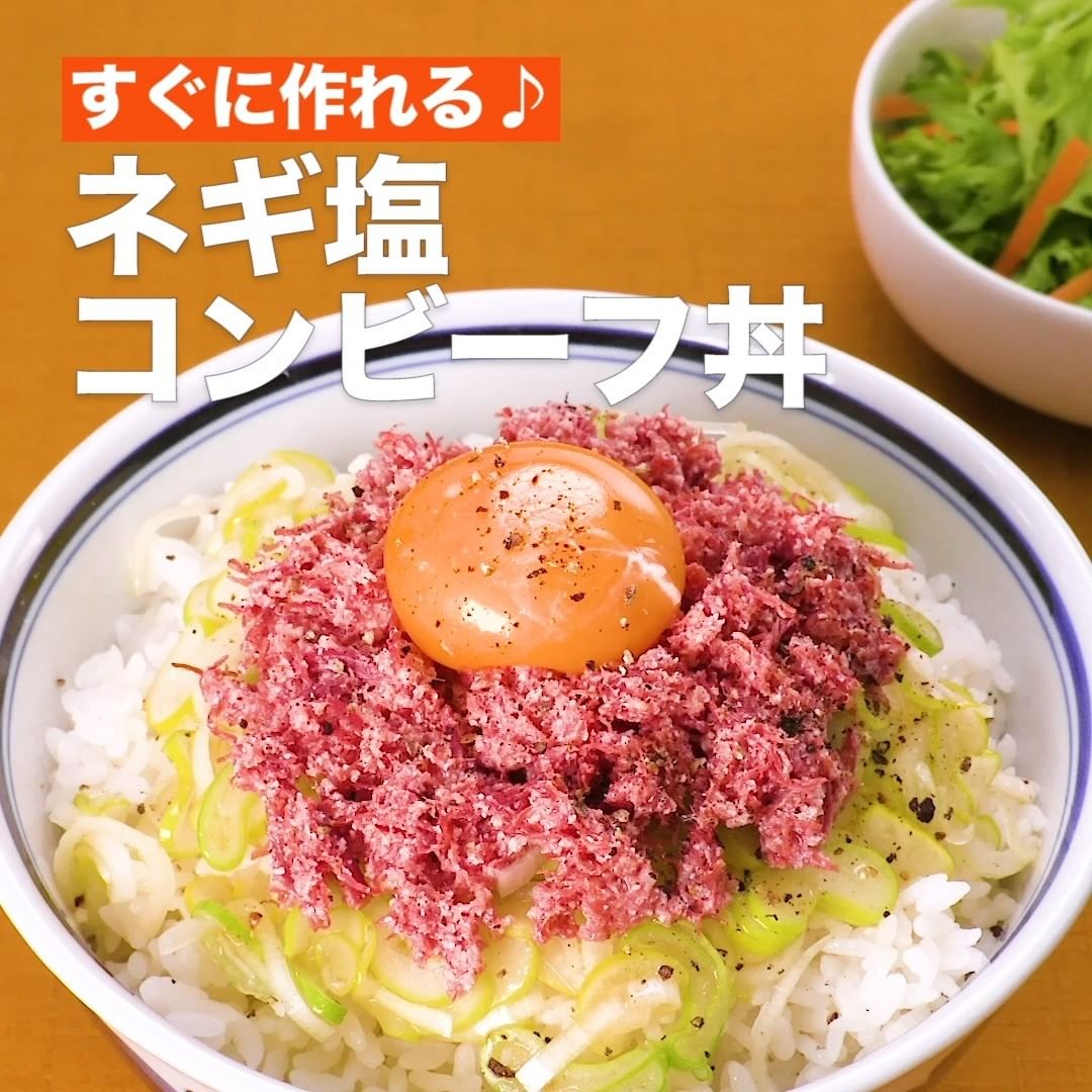 ⑦<すぐに作れる♪ネギ塩コンビーフ丼>