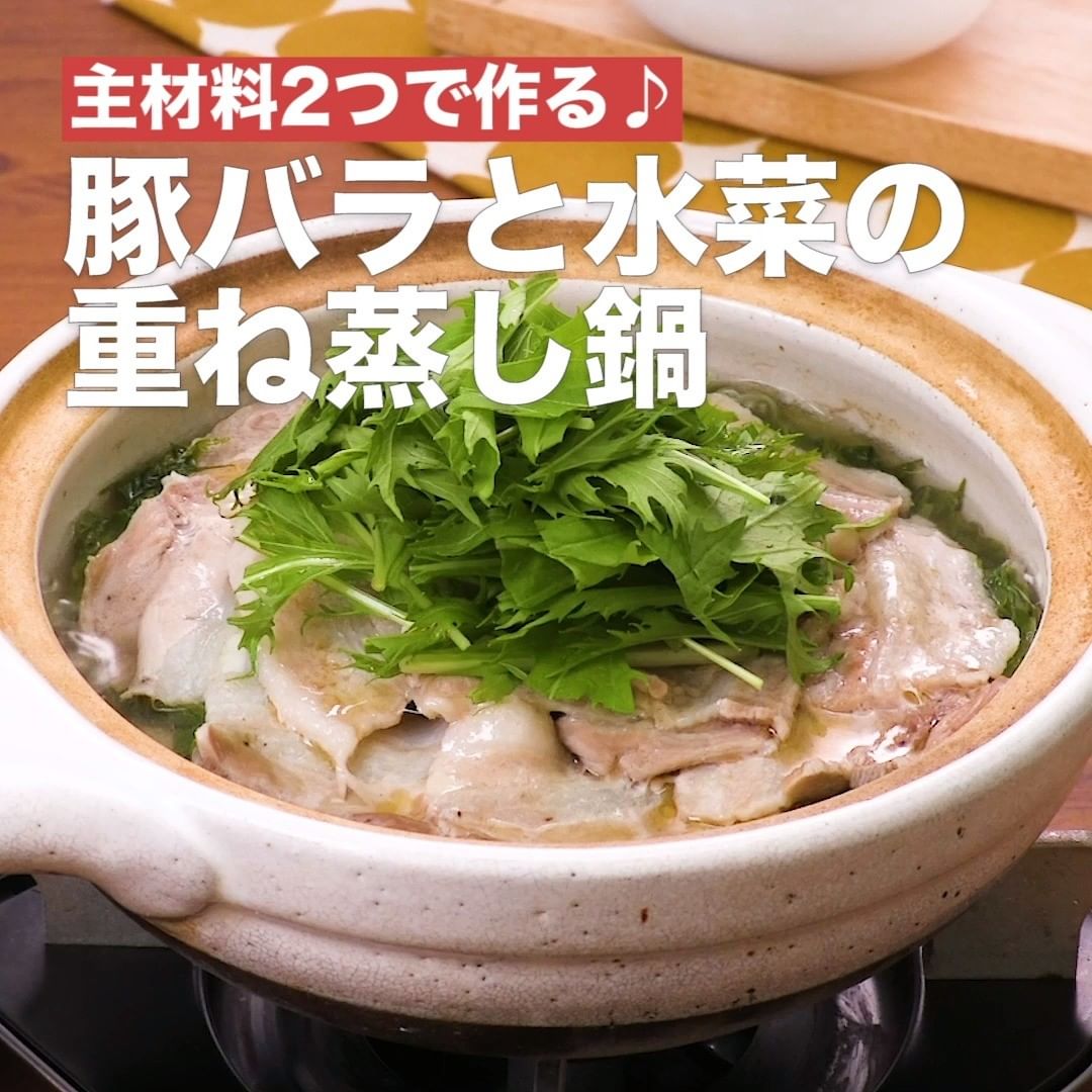 ④<主材料2つで作る♪豚バラと水菜の重ね蒸し鍋>