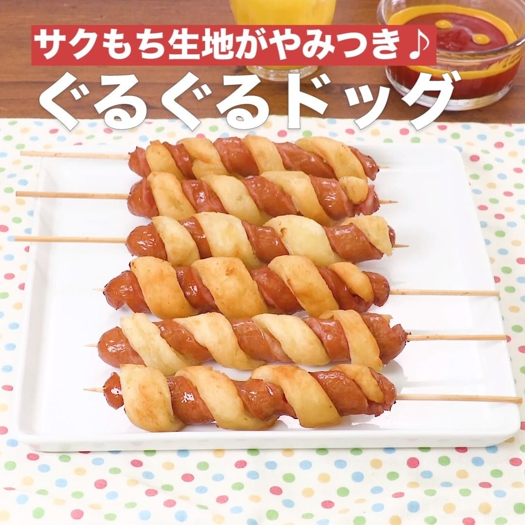 らせん状のアメリカンドッグはインパクト抜群!パーティーにぴったりです。じゃがいもを入れて生地にもちっと感をプラスします♪