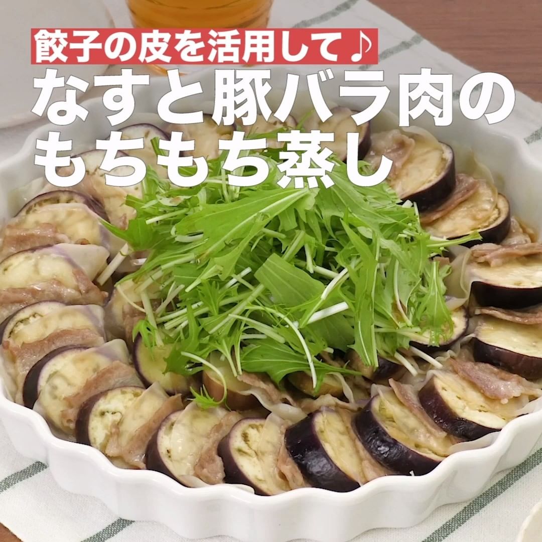 ④<餃子の皮を活用して♪なすと豚バラ肉のもちもち蒸し>