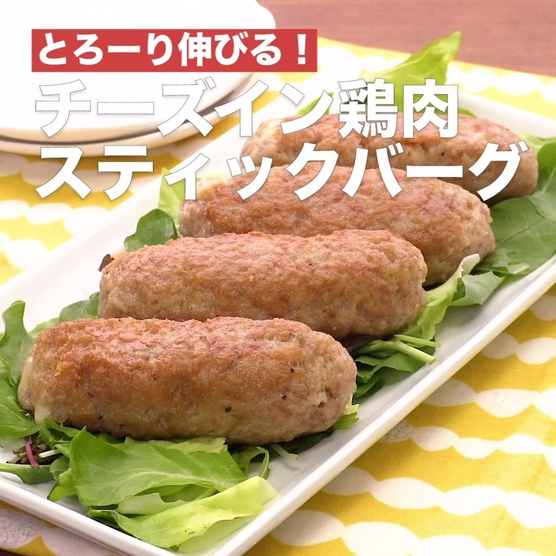 ②<とろーり伸びる!チーズイン鶏肉スティックバーグ>