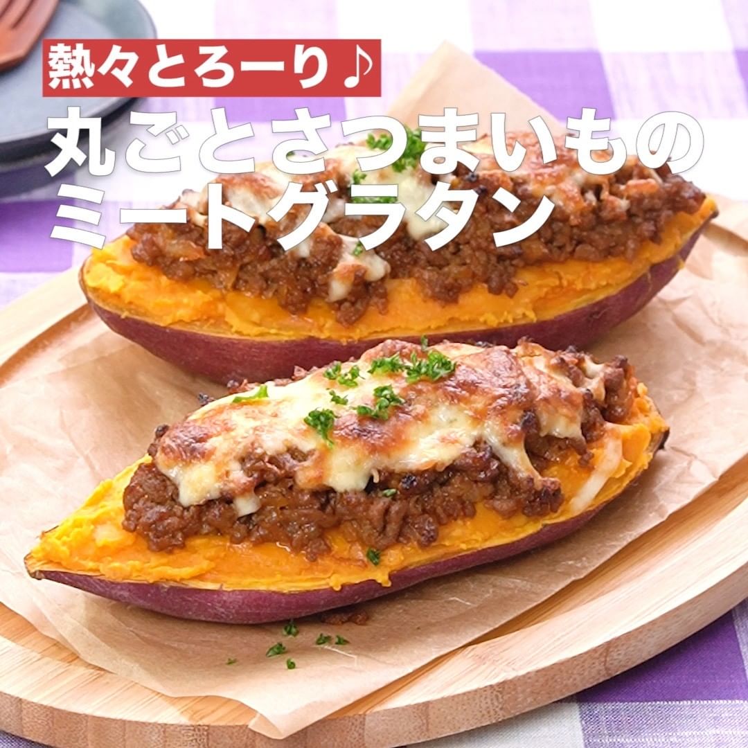さつまいもを丸ごと使ったミートグラタンの作り方をご紹介します。さつまいもの優しい甘さとトマトベースのミートソースがよく合う!とろっとろのチーズがやみつきになります。