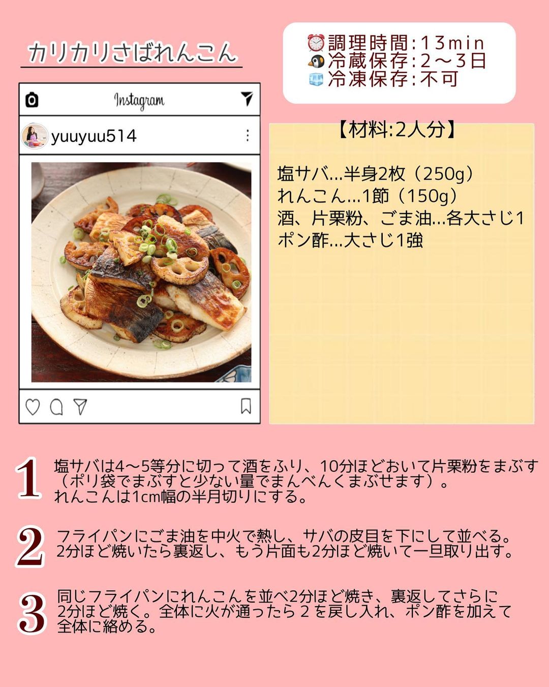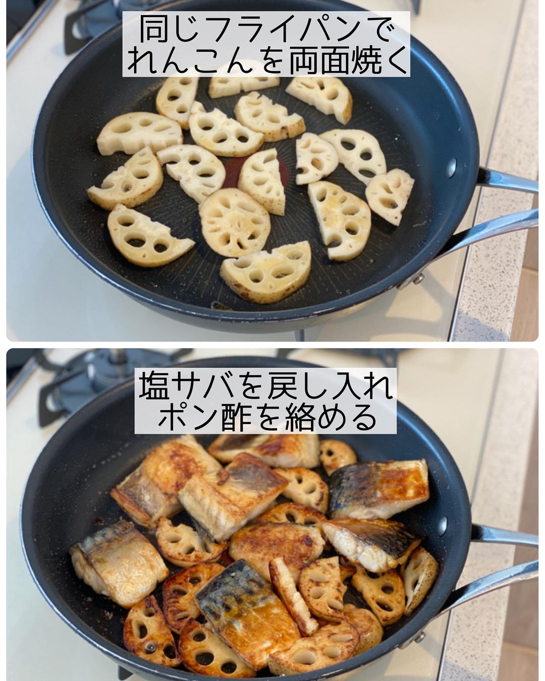 塩サバに片栗粉をまぶすと、外はカリカリ 中はふっくらジューシー🤤💕 これにれんこんを合わせてポン酢で仕上げました♡ あと味さっぱりなので、季節の変わり目にもぴったり♪