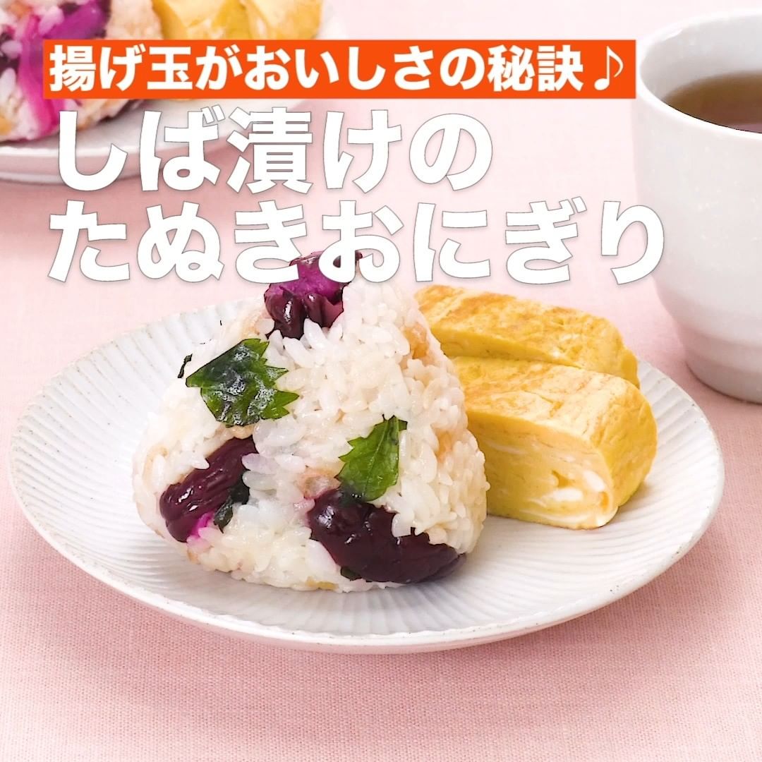 ③<揚げ玉がおいしさの秘訣♪しば漬けのたぬきおにぎり>