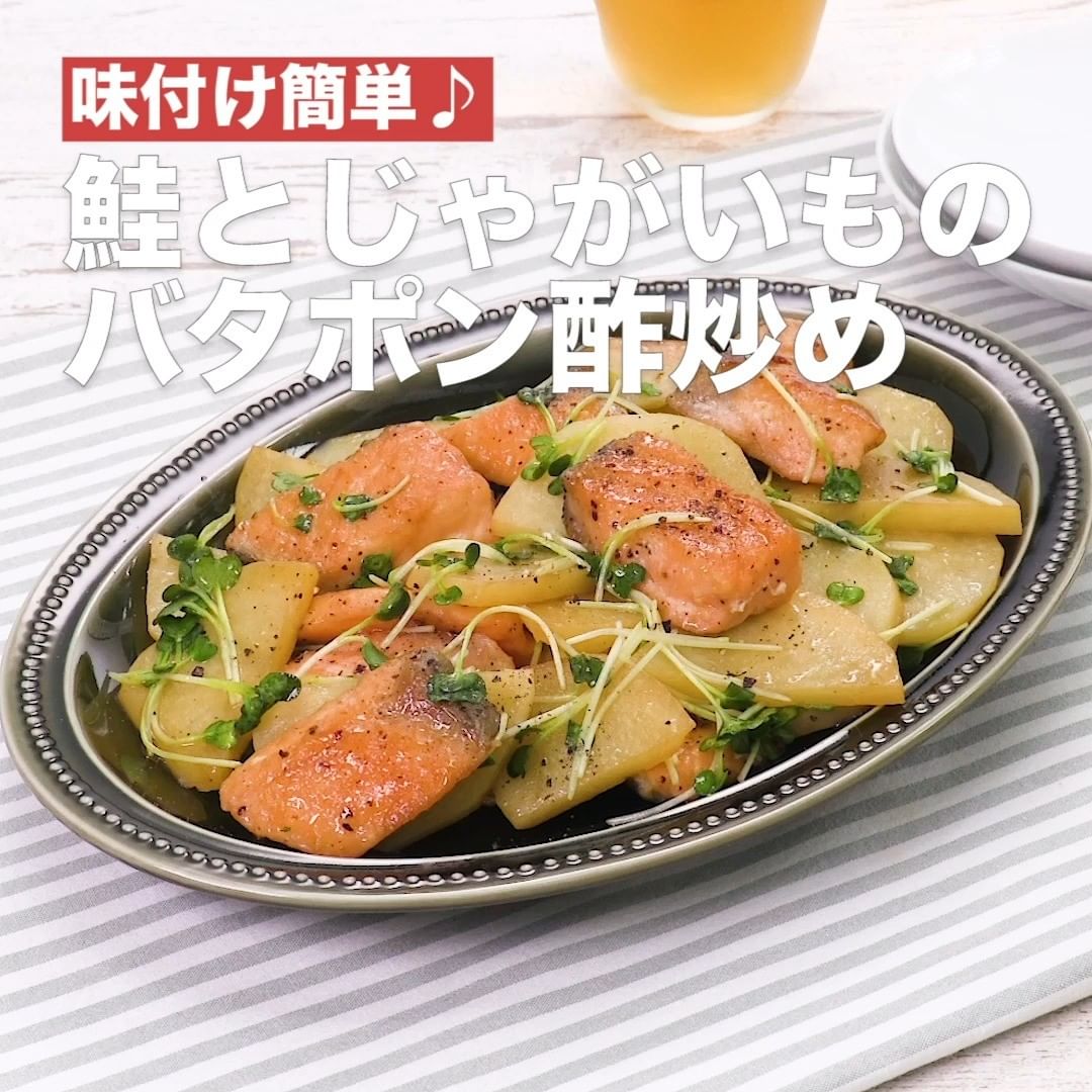 ⑦<味付け簡単♪鮭とじゃがいものバタポン酢炒め>