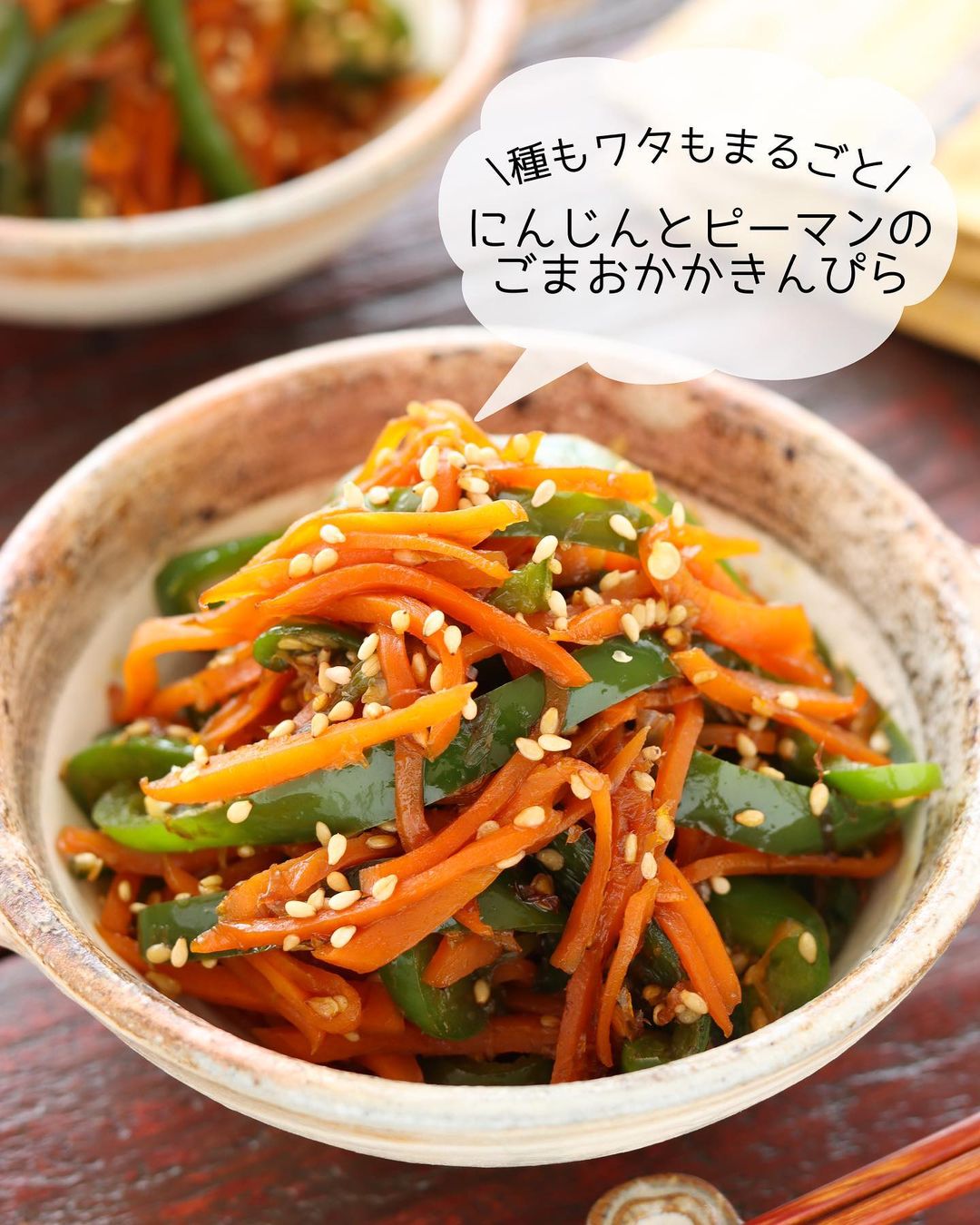 𓎩 #にんじんとピーマンのごまおかかきんぴら