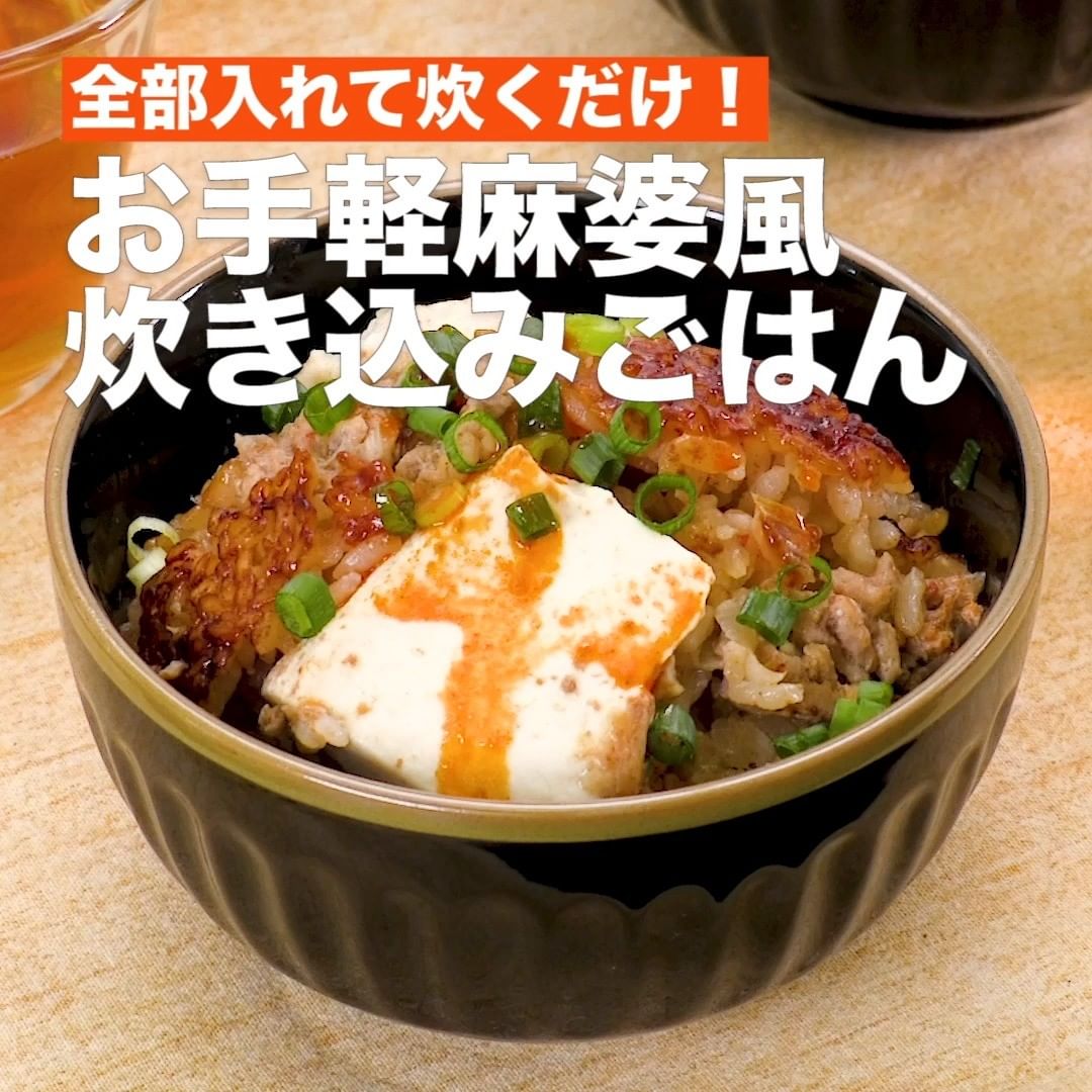 ⑤<全部入れて炊くだけ!お手軽麻婆風炊き込みごはん>