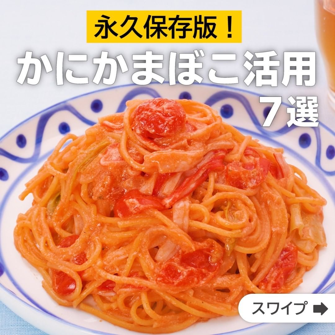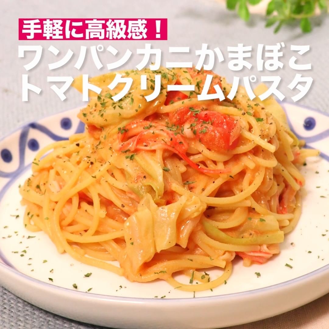 ①<手軽に高級感!ワンパンカニかまぼこトマトクリームパスタ>