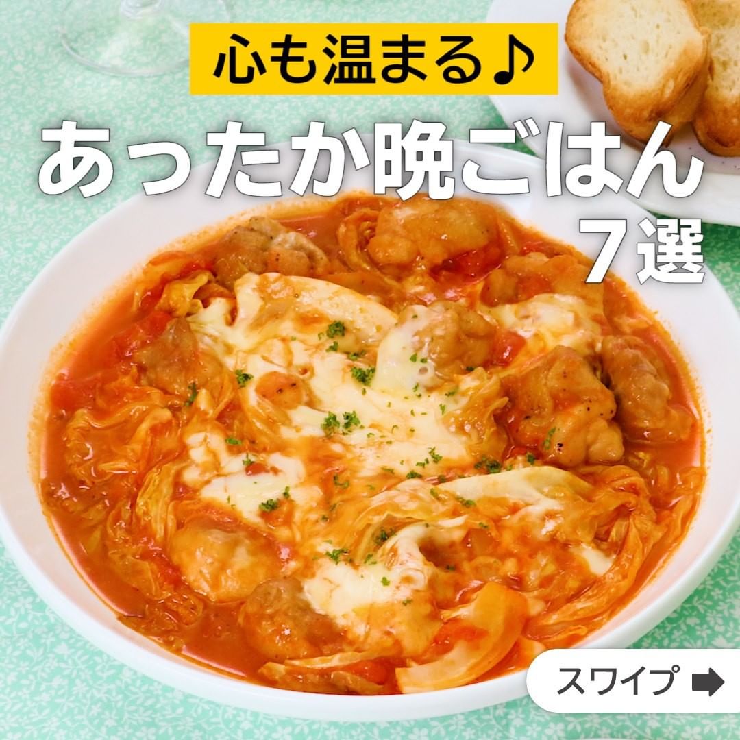 ①<チーズのコクがたまらない♪キャベツとチキンのトマトチーズ煮>