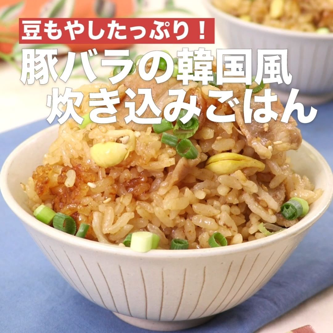 ①<豆もやしたっぷり!豚バラの韓国風炊き込みごはん>