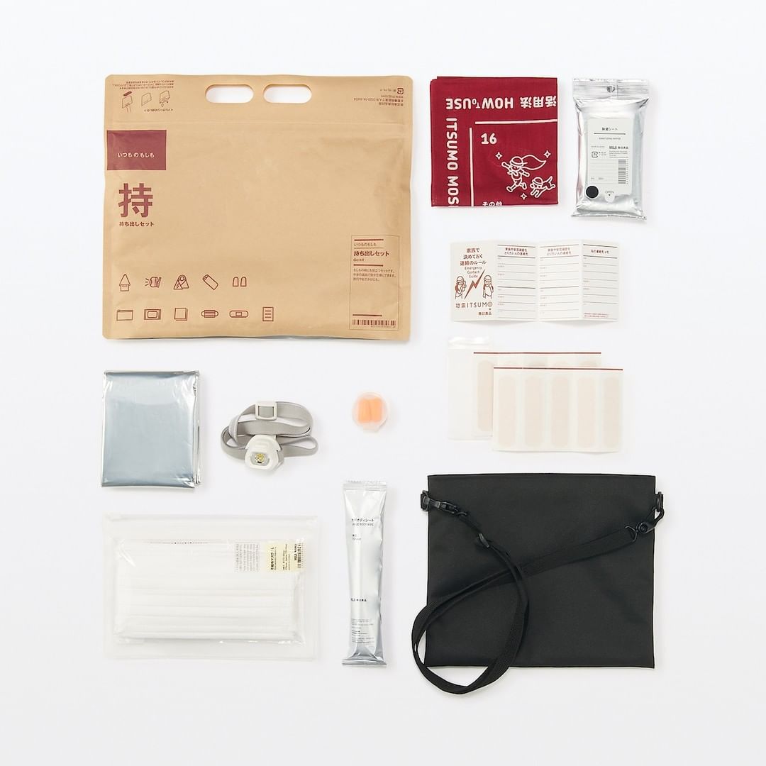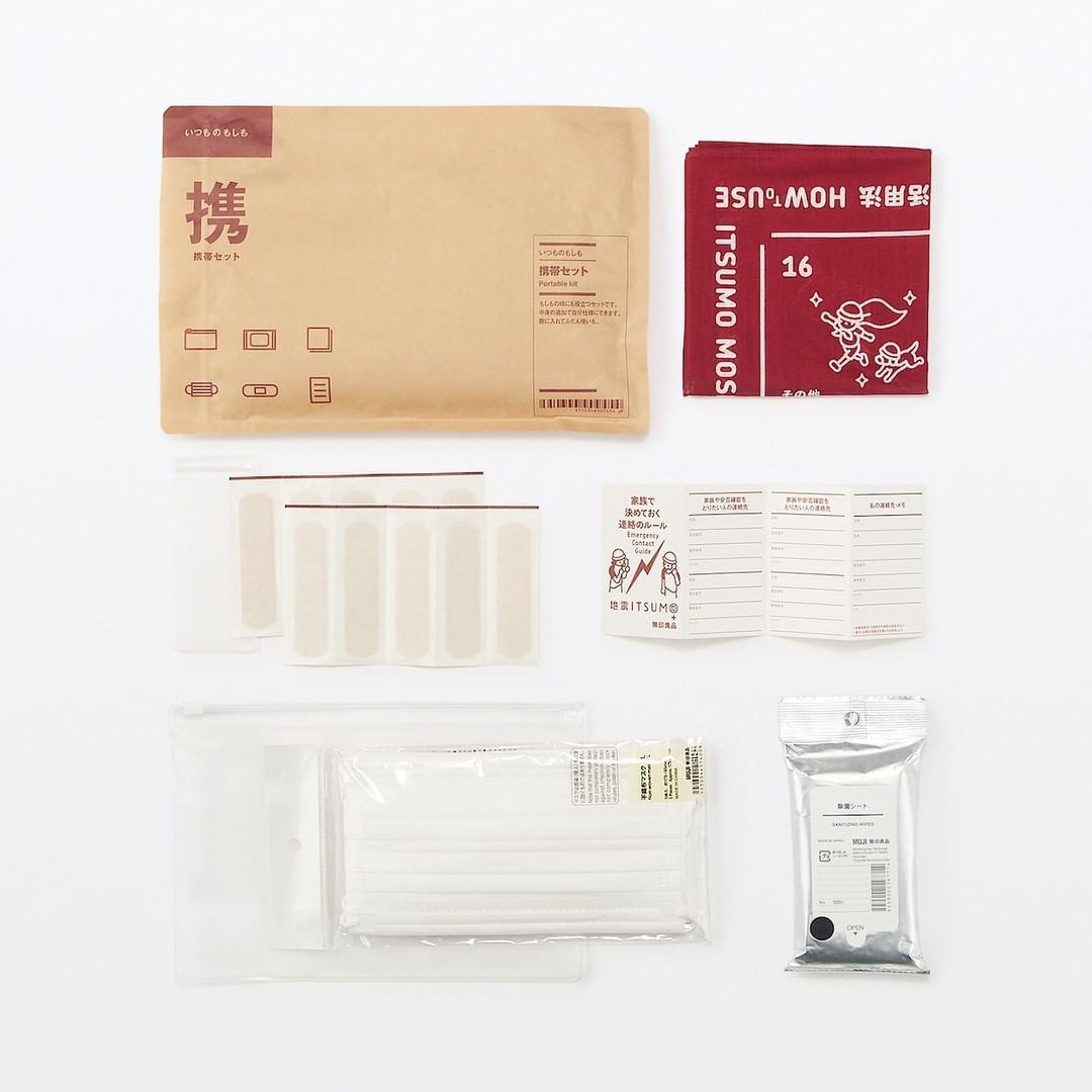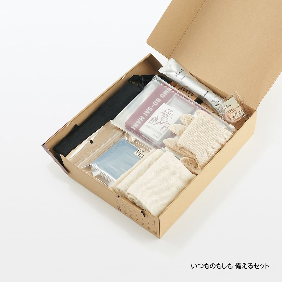 無印良品では、防災の備え『いつものもしもセット』を、「携帯セット」「持ち出しセット」「備えるセット」の3種類で取り揃えています。