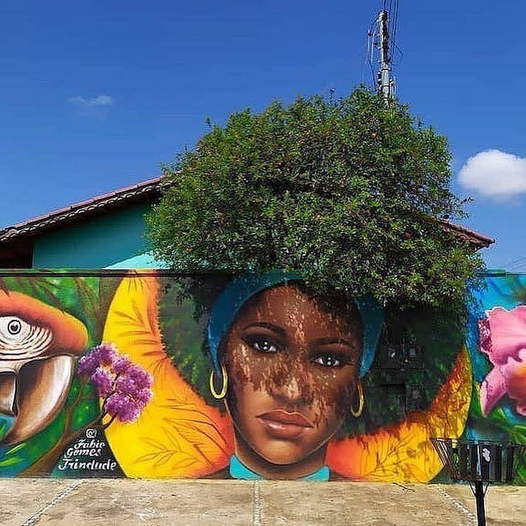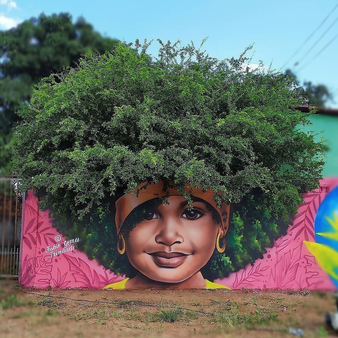 Brazilian street artist @fabiogomestrindade creates murales with portraits of women and children wearing the branches of trees as “hair” – how creative is this?!!