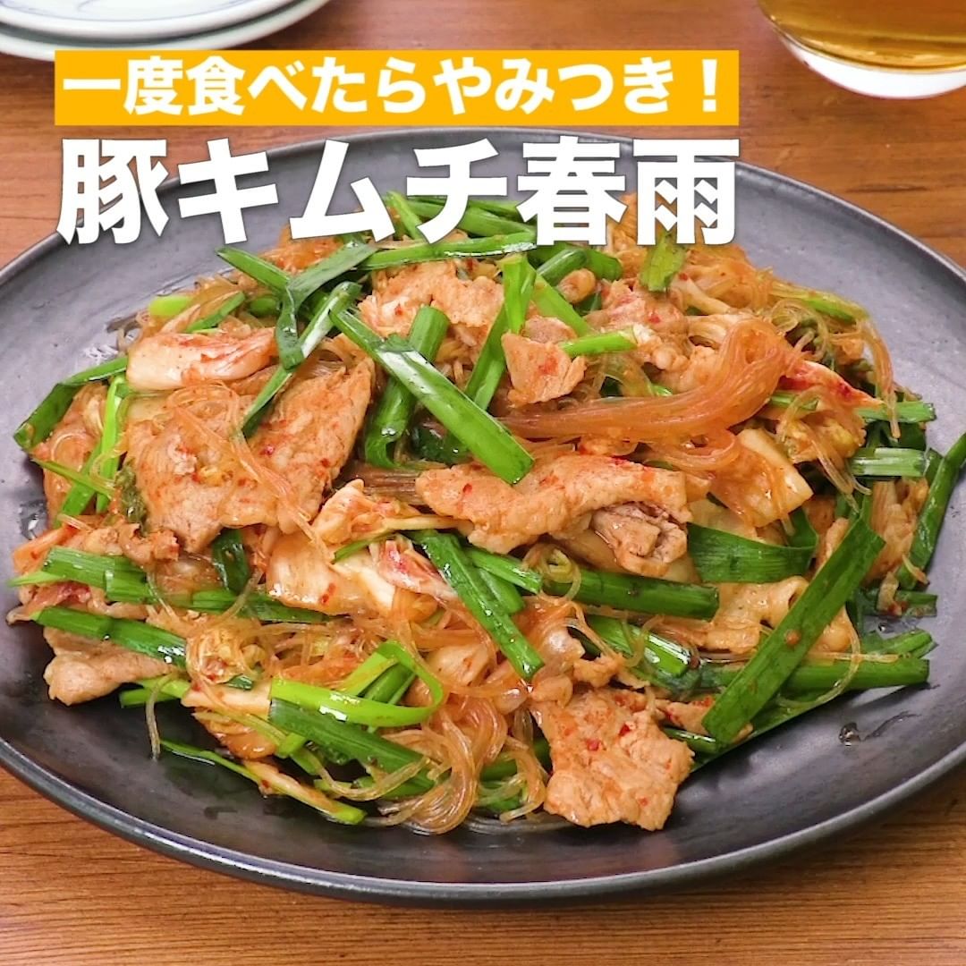 定番の「豚キムチ」を春雨でボリュームアップ♪ご飯もお酒もきっと進む、やみつきの味わいです。簡単なのでぜひチャレンジしてみて下さい!