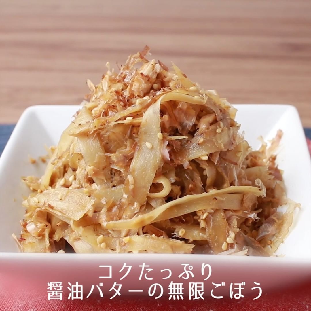 ①コクたっぷり 醤油バターの無限ごぼう