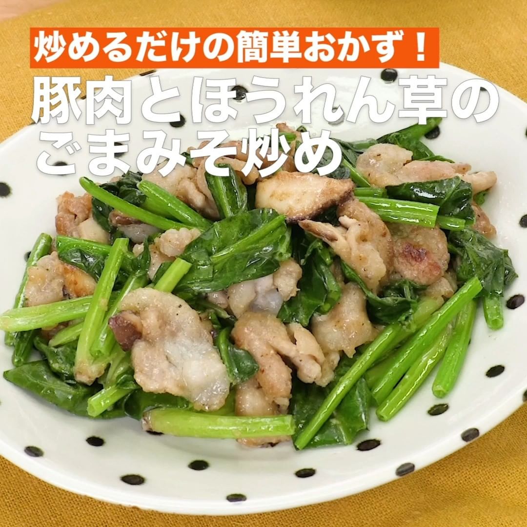 ②<炒めるだけの簡単おかず!豚肉とほうれん草のごまみそ炒め>