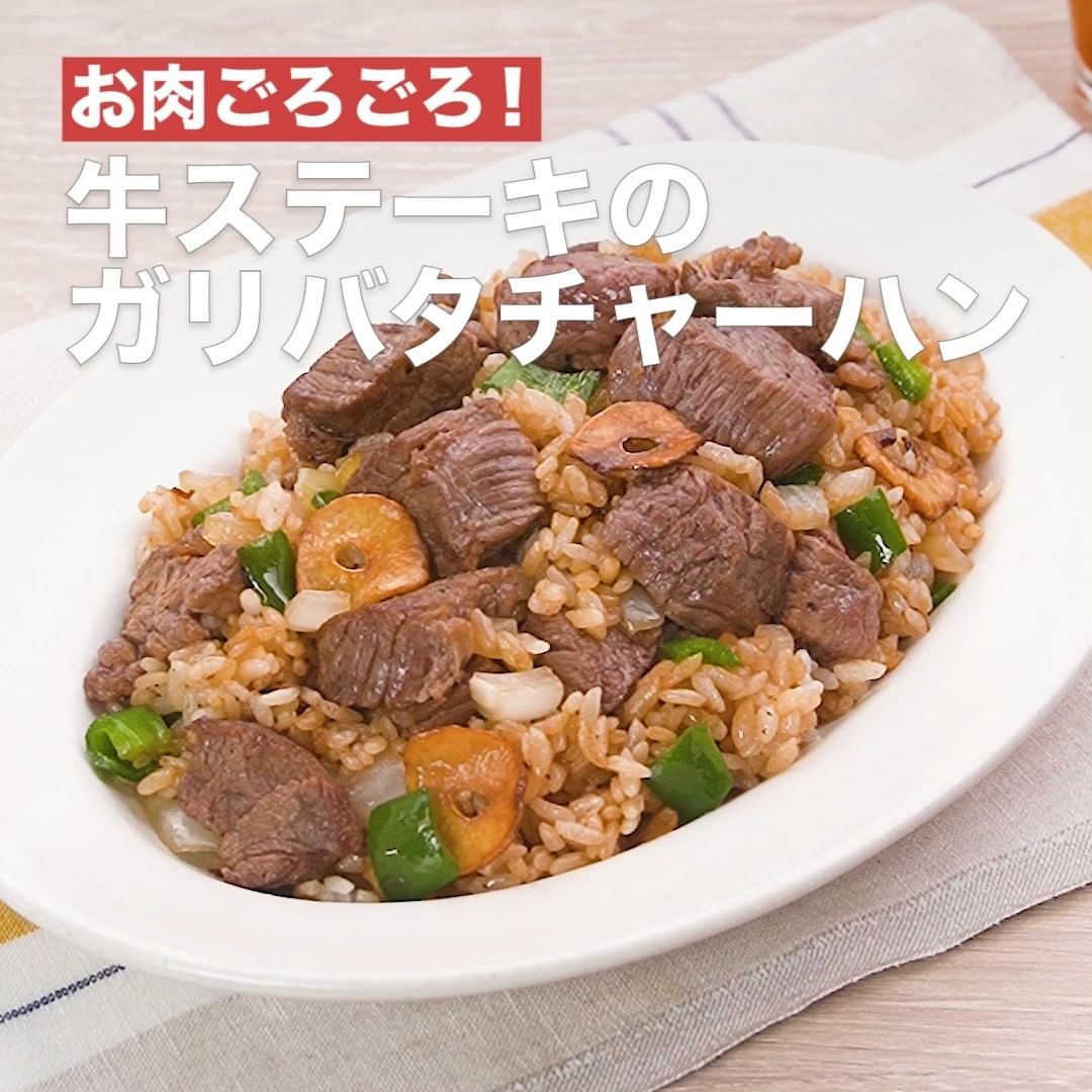 ①<お肉ごろごろ!牛ステーキのガリバタチャーハン>