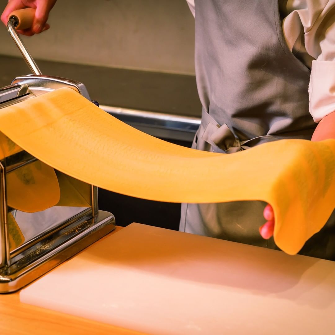 独特の弾力があるパスタに絡みつくソースは塩のみで調味し、出汁の旨みをしっかり生かしている。