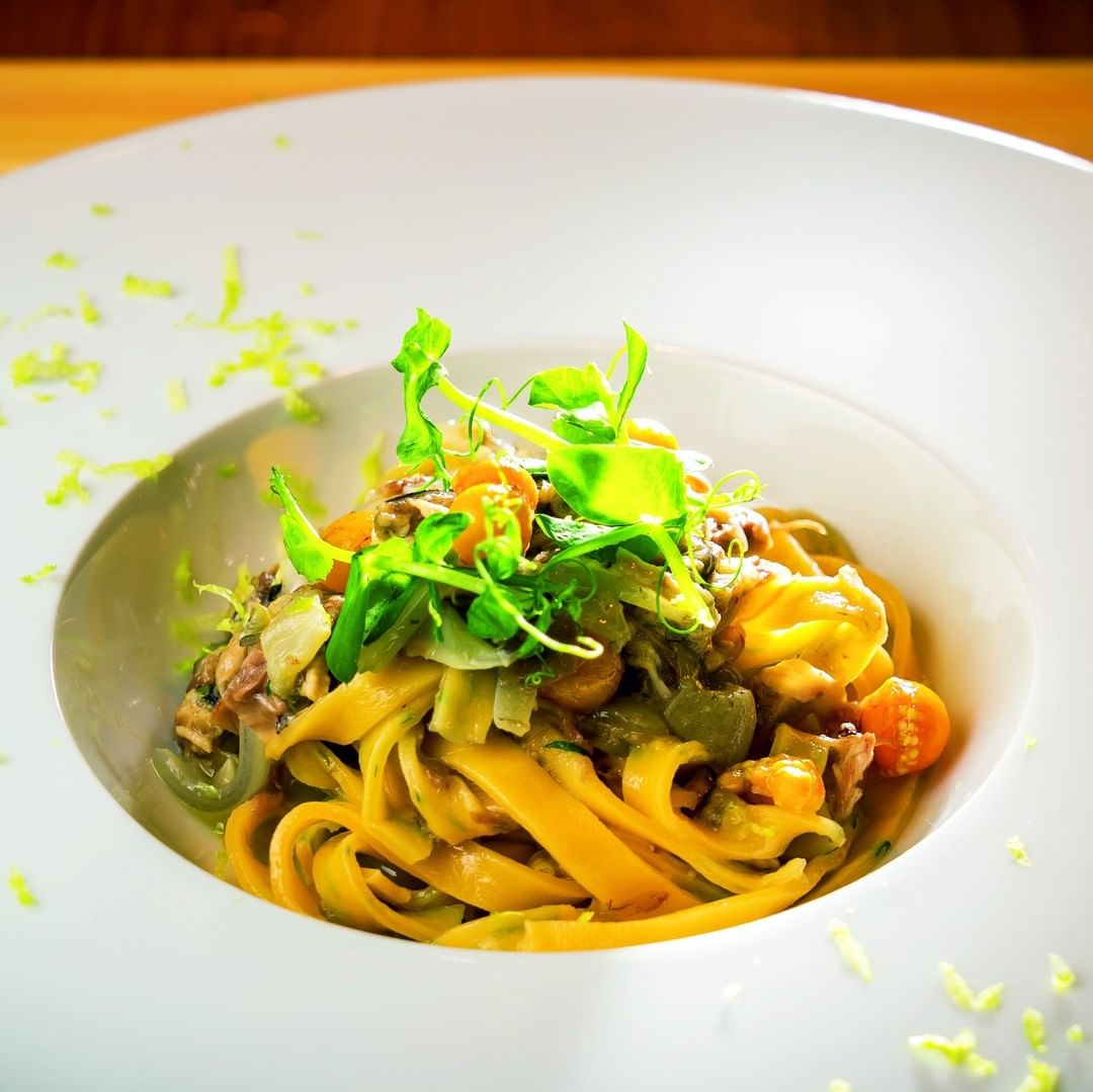 心地いい弾力のパスタに旬の贅沢な旨みが染み渡る