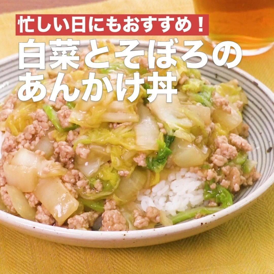 ⑥<忙しい日にもおすすめ!白菜とそぼろのあんかけ丼>