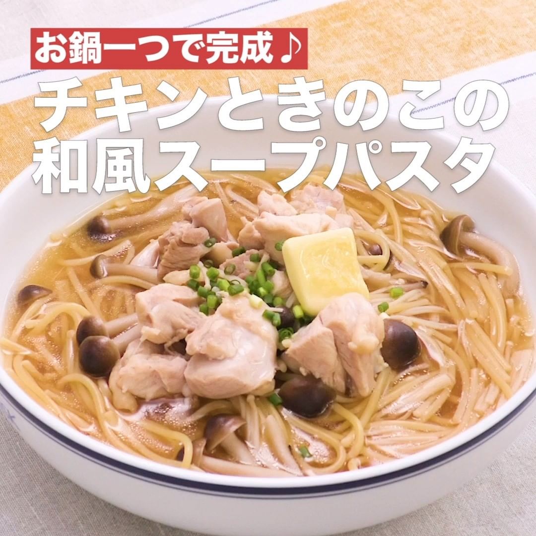 ⑤<お鍋一つで完成♪チキンときのこの和風スープパスタ>