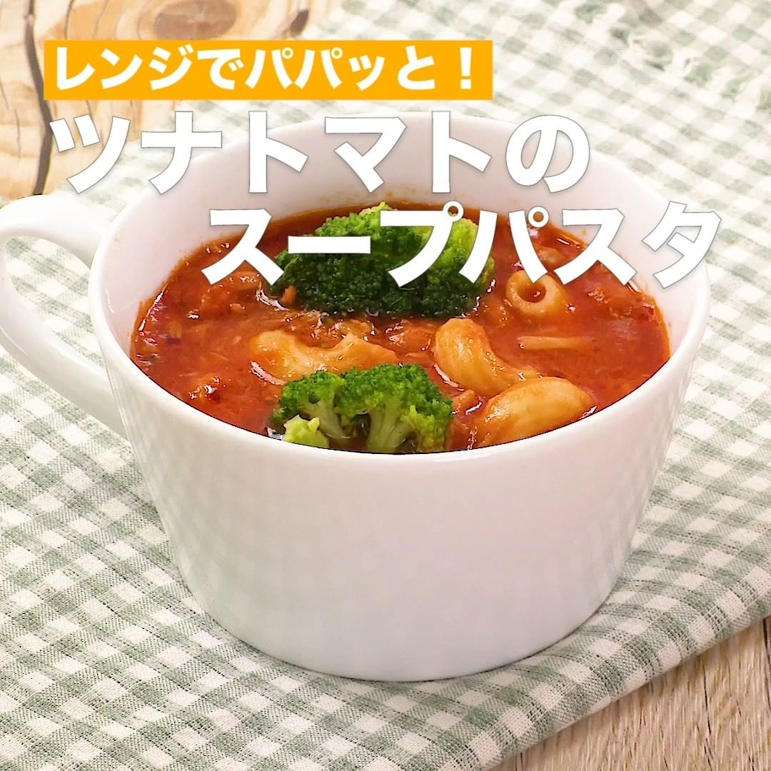 ⑤<レンジでパパッと!ツナトマトのスープパスタ>