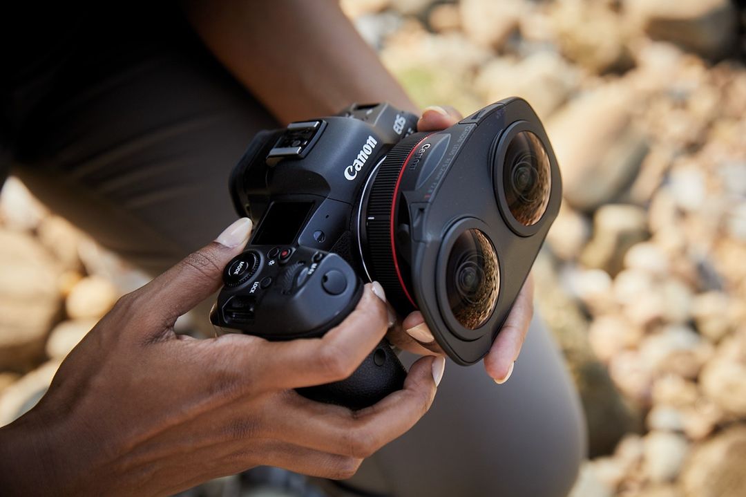 *When paired with the Canon EOS R5 camera equipped with firmware update version 1.5.0 or later, and with the use of Canon EOS VR Software solutions. Viewing in 3D requires a compatible Head Mount Display.