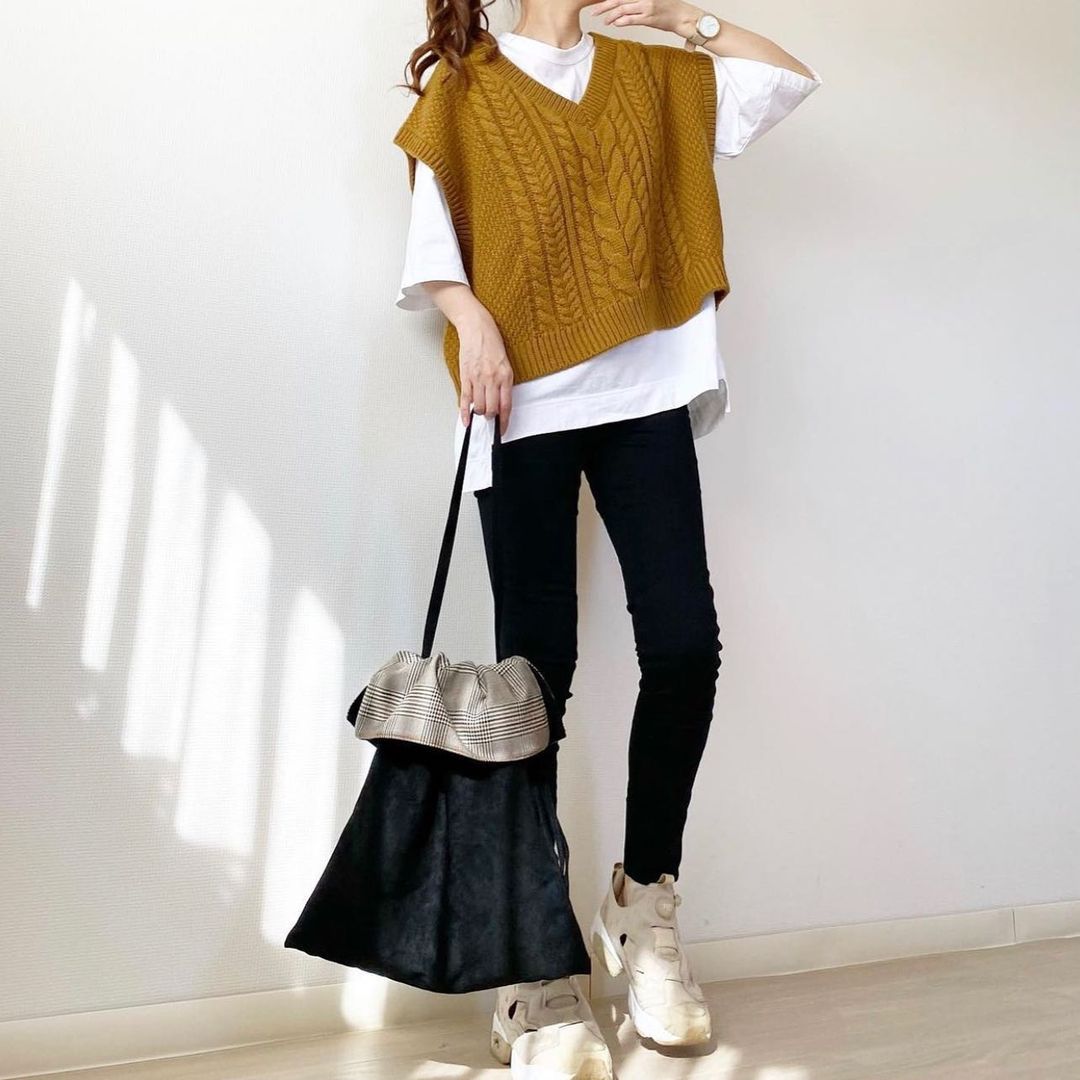 秋の重ね着にコンパクト丈のベストはマストハブ👌