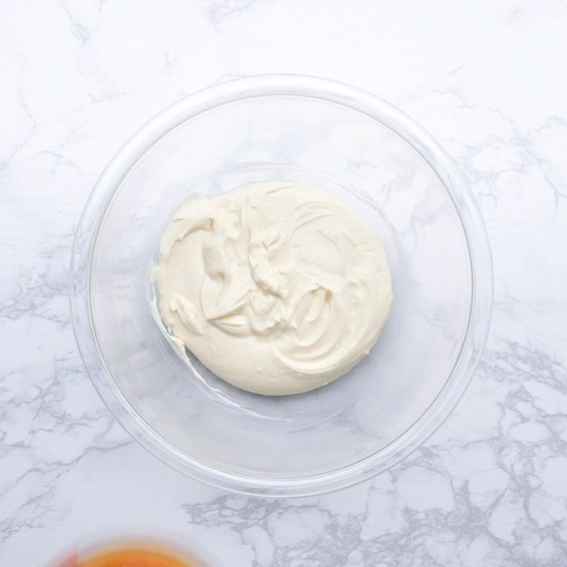 4.ボウルにクリームチーズを入れてクリーム状になるまで練り、砂糖を加えてよく混ぜる。